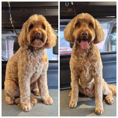Bij deze behandeling word de vacht in het gewenste model geknipt of geschoren. Denk bijvoorbeeld aan een boomer, doodle, poedel etc.